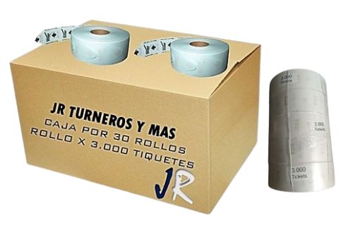 ROLLOS DE TIQUETES para su sistema de turno. Paquete por cinco rollos o caja de 30 o 40 unidades.