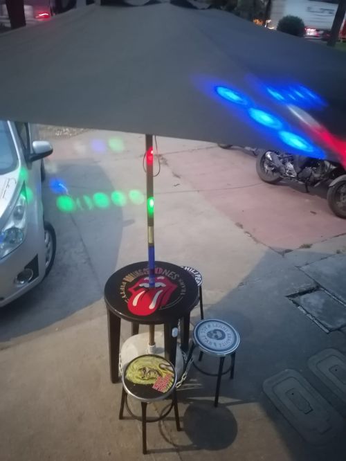 Incluye : Nevera, Barra Bar con 2 sillas , cinco mesas con sus respectivas sillas y logos de rock "3" en perfecto estado, tres barriles acondicionados como mesas con sus respectivas sillas con logos de Rock, seis Puf en cuero, Bolirana clasica, Dos Televisores, decoracion "cuadros" alusivo al Rock en madera y vidrio, dos camaras de seguridad, Portatil, teatro en casa, mesa con parasol con timbre de servicio, aviso luz neon, aviso local grande, aviso publicidad local con luz, tablaro publicidad luz neon borrable, Dispensador licor, entrada en vidrio para cubrir frio y sonido.